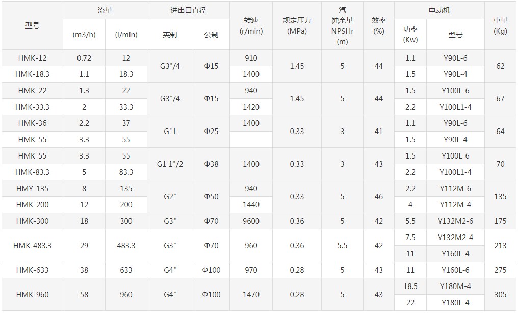 HMK系列磁力驅(qū)動(dòng)齒輪泵性能參數(shù)表 :