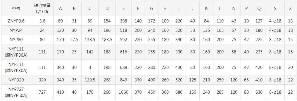 NYP3.6,NYP24,NYP80,NYP111(A),NYP727泵頭外形尺寸
